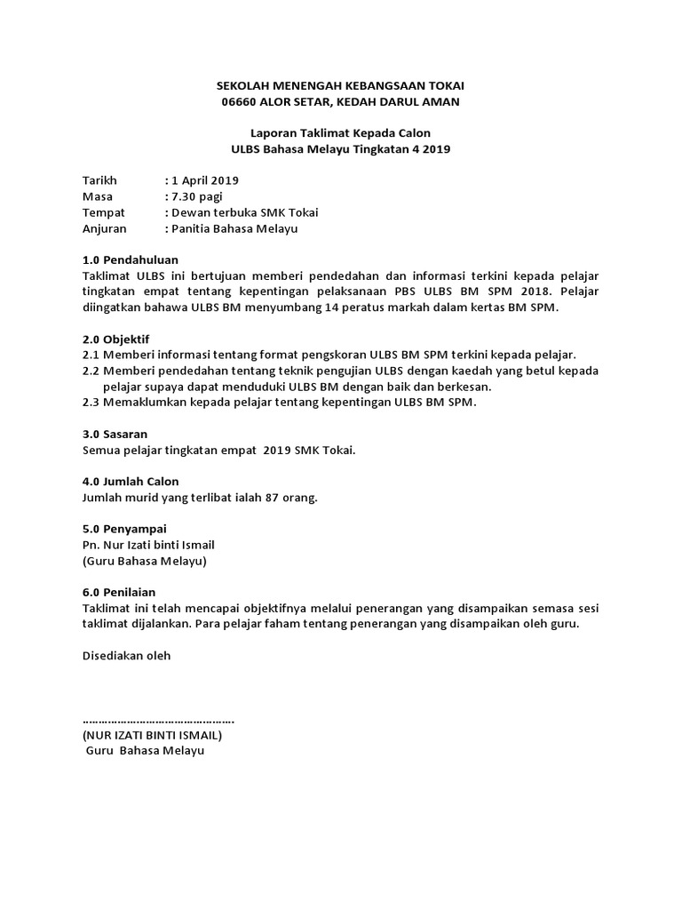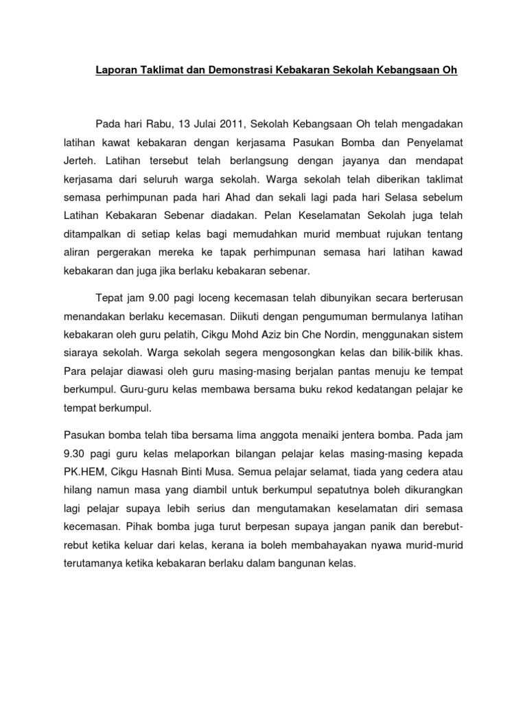 Laporan Taklimat Dan Demonstrasi Kebakaran Sekolah Kebangsaan Oh Pdf